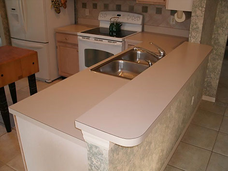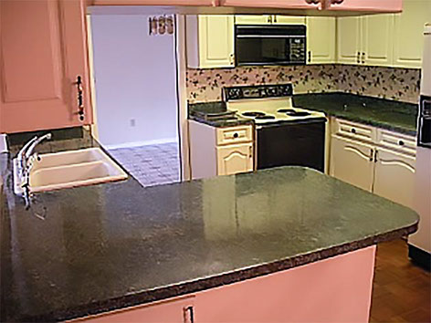 We can refinish Formica, stone and composite countertops with colors and textures so that you'll love them again. We've been refinishing and resurfacing countertops for 10 years, and we really know our stuff! Give us a call to discuss your refinishing needs and we'll send you a free quote. Within a few days you can have the countertops you've been dreaming of.